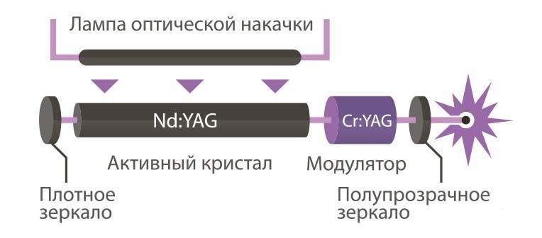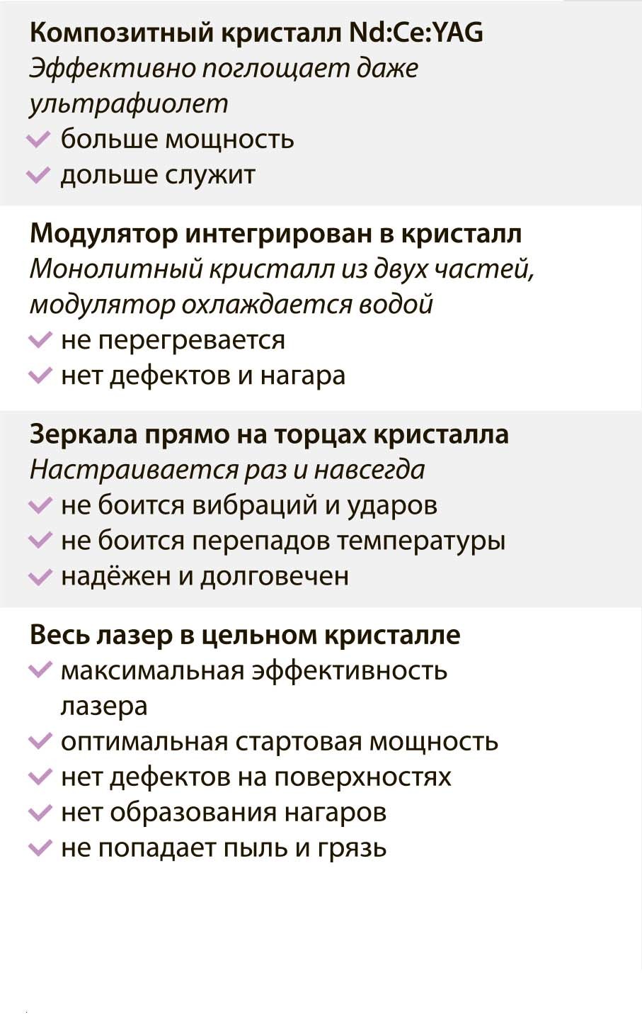 В приборе используются композитные кристаллы нового поколения, с нанесением зеркал прямо на грани кристалла.