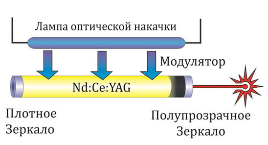 Монолитный кристалл из двух частей, модулятор охлаждается водой